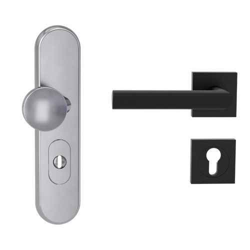 Griffwerk Kombi-Schutzbeschlag TITANO SB_882 mit Griff TRI 134 72mm Zylinderabdeckung Tür 38-50mm L TRI 134 eckig Graphitschwarz
