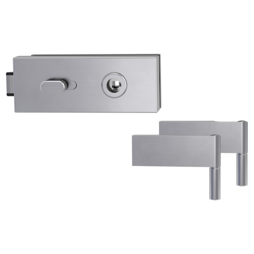 Griffwerk PURISTO 1.0 -Edelstahl matt Ganzglastürbeschlagset -2-teiliger Bandsatz -ohne Griff -PZ, WC Knaufzylinder Schlossseite