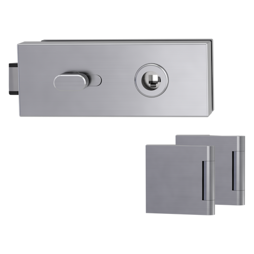 Griffwerk PURISTO 1.0 -Edelstahl matt Ganzglastürbeschlagset -3-teiliger Bandsatz -ohne Griff -PZ, WC Knaufzylinder Schlossgegenseite