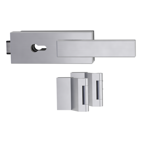 Griffwerk PURISTO S -Edelstahl matt Ganzglastürbeschlagset -3-teiliger Bandsatz -mit Griff CARLA -EM -PZ