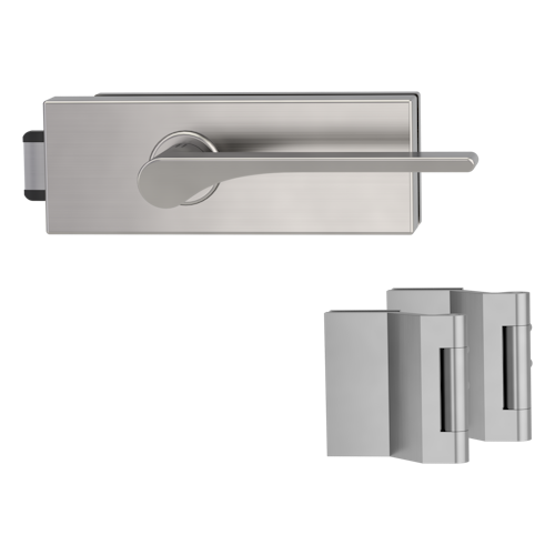 Griffwerk PURISTO S -Edelstahl matt Ganzglastürbeschlagset -3-teiliger Bandsatz -mit Griff DESM LEAF LIGHT -SG -UV