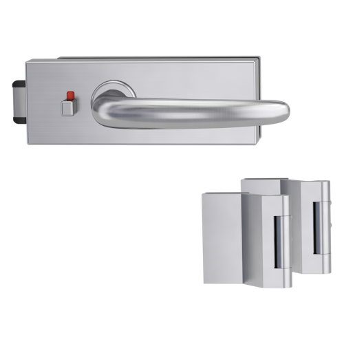 Griffwerk PURISTO S -Edelstahl matt Ganzglastürbeschlagset -3-teiliger Bandsatz -mit Griff DESM ULMER GRIFF PROF -EM -smart2lock