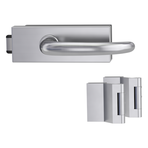 Griffwerk PURISTO S -Edelstahl matt Ganzglastürbeschlagset -3-teiliger Bandsatz -mit Griff DESM ULMER GRIFF PROF -EM -UV