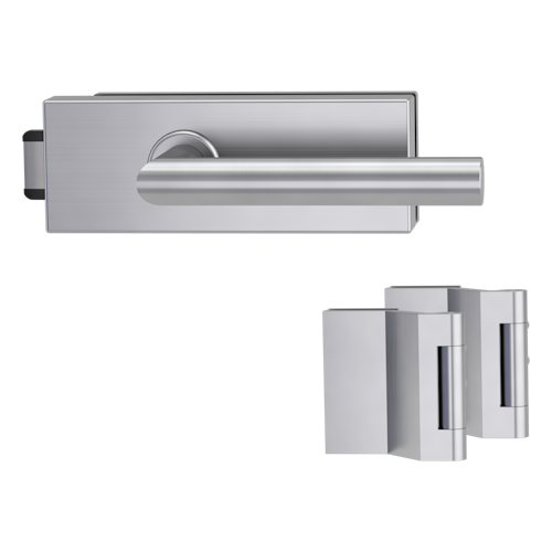 Griffwerk PURISTO S -Edelstahl matt Ganzglastürbeschlagset -3-teiliger Bandsatz -mit Griff LUCIA -EM -UV