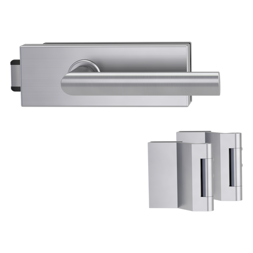 Griffwerk PURISTO S -Edelstahl matt Ganzglastürbeschlagset -3-teiliger Bandsatz -mit Griff OVIDA -EM -UV