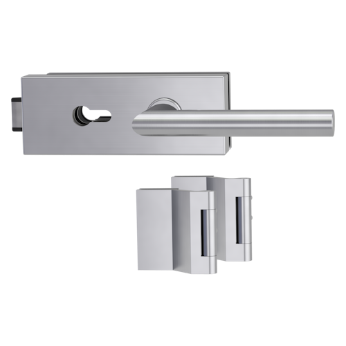 Griffwerk PURISTO S -Edelstahl matt Ganzglastürbeschlagset -3-teiliger Bandsatz -mit Griff VIVIA -EM -PZ