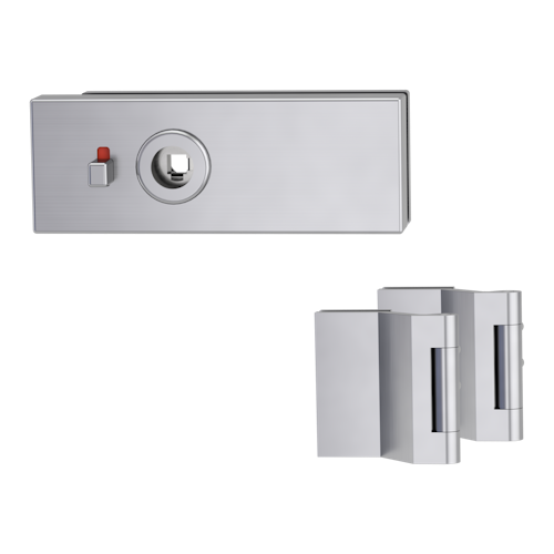 Griffwerk PURISTO S -Edelstahl matt Ganzglastürbeschlagset -3-teiliger Bandsatz -ohne Griff mit Magnetfalle -smart2lock