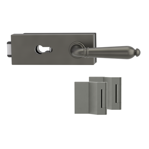 Griffwerk PURISTO S -Kaschmirgrau Ganzglastürbeschlagset -3-teiliger Bandsatz -mit Griff CAROLA Schraubt. -KGR -PZ