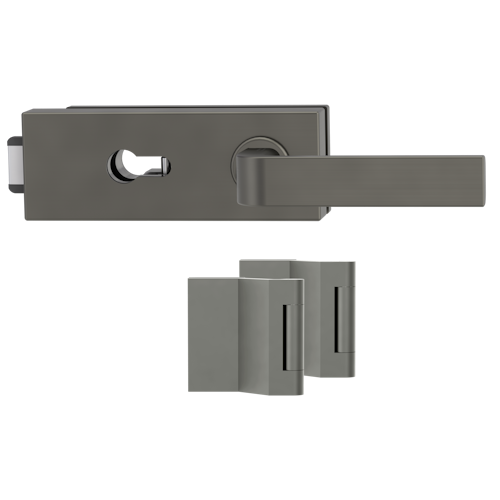 Griffwerk PURISTO S -Kaschmirgrau Ganzglastürbeschlagset -3-teiliger Bandsatz -mit Griff DESM GRAPH -EM -PZ