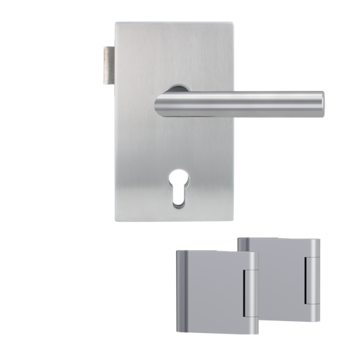 Griffwerk QUATTRO 1.0 -Edelstahl matt Ganzglastürbeschlagset -Office/Office -mit Griff LUCIA PROF EM -PZ re