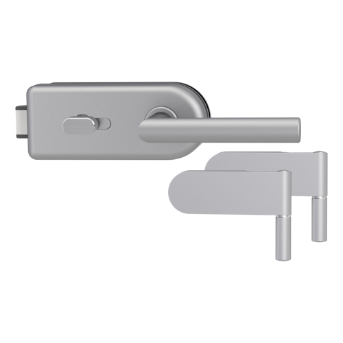 Griffwerk SMILE 1.0 -Alu EV1 Ganzglastürbeschlagset -2-teiliger Bandsatz -mit Griff L-Form -PZ, WC Knaufzylinder Schlossseite