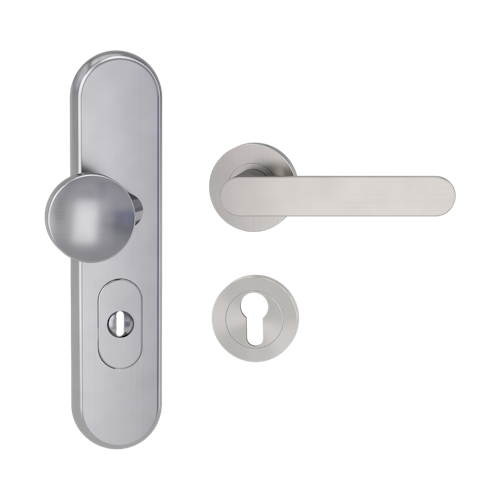 Griffwerk TITANO Kombi SB_882 ES1 (S2) -Edelstahl matt Kombi-Schutzbeschlag -Knopf/Drücker -mit Griff AVUS -SG -rund -R -ZA, 72mm -TS 38-50