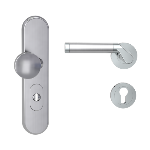 Griffwerk TITANO Kombi SB_882 ES1 (S2) -Edelstahl matt Kombi-Schutzbeschlag -Knopf/Drücker -mit Griff CORINNA Schraubt. -CHR/EM -L -ZA, 72mm -TS 38-50