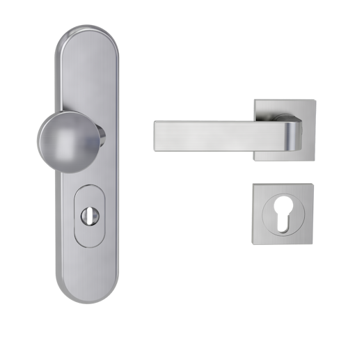 Griffwerk TITANO Kombi SB_882 ES1 (S2) -Edelstahl matt Kombi-Schutzbeschlag -Knopf/Drücker -mit Griff DESM GRAPH -SG -eckig -L -ZA, 72mm -TS 38-50