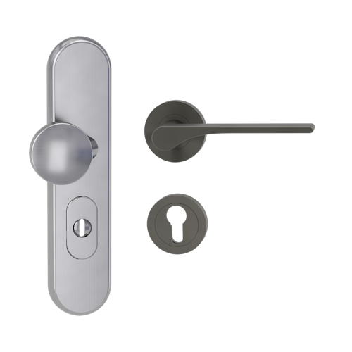 Griffwerk TITANO Kombi SB_882 ES1 (S2) -Edelstahl matt Kombi-Schutzbeschlag -Knopf/Drücker -mit Griff DESM LEAF LIGHT -KGR -rund -R -ZA, 72mm -TS 38-50