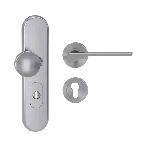 Griffwerk TITANO Kombi SB_882 ES1 (S2) -Edelstahl matt Kombi-Schutzbeschlag -Knopf/Drücker -mit Griff DESM LEAF LIGHT - SG -rund -R -ZA, 72mm -TS 38-50