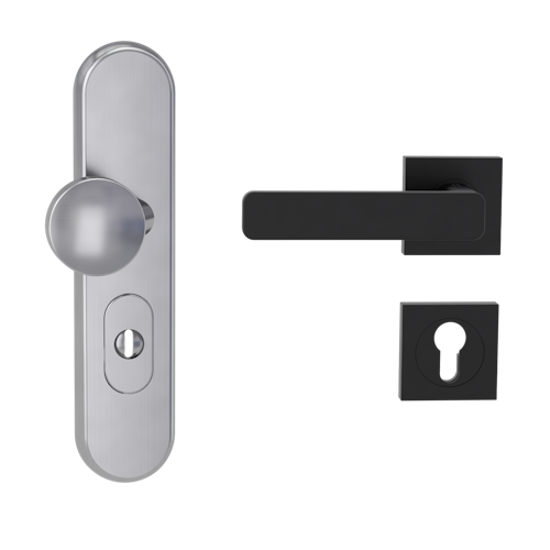 Griffwerk TITANO Kombi SB_882 ES1 (S2) -Edelstahl matt Kombi-Schutzbeschlag -Knopf/Drücker -mit Griff DESM MINIMAL MODERN-GSC-eckig-L-ZA, 72mm -TS 38-50