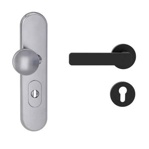 Griffwerk TITANO Kombi SB_882 ES1 (S2) -Edelstahl matt Kombi-Schutzbeschlag -Knopf/Drücker -mit Griff DESM MINIMAL MODERN-GSC-rund -L-ZA, 72mm -TS 38-50