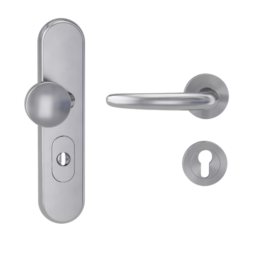 Griffwerk TITANO Kombi SB_882 ES1 (S2) -Edelstahl matt Kombi-Schutzbeschlag -Knopf/Drücker -mit Griff DESM ULMER GRIFF PROF-EM-rund -L-ZA,72mm -TS 38-50