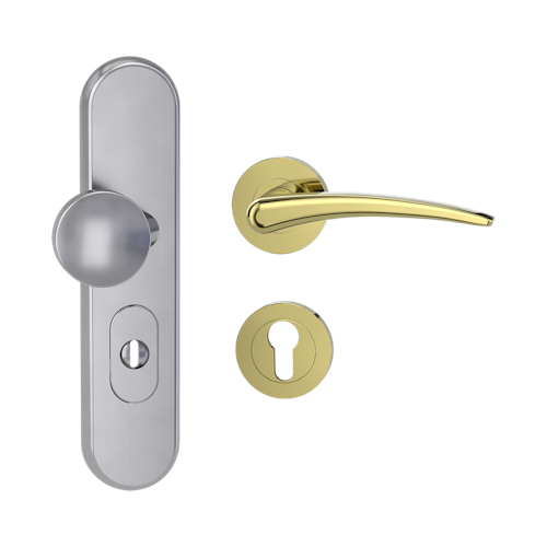 Griffwerk TITANO Kombi SB_882 ES1 (S2) -Edelstahl matt Kombi-Schutzbeschlag -Knopf/Drücker -mit Griff MARISA Schraubt. -ME-O(Z) -R -ZA, 72mm -TS 38-50