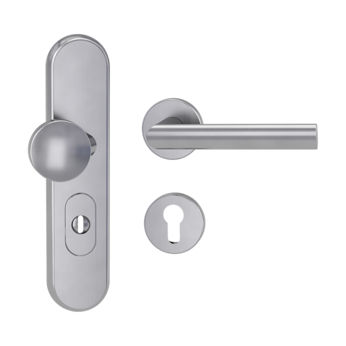Griffwerk TITANO Kombi SB_882 ES1 (S2) -Edelstahl matt Kombi-Schutzbeschlag -Knopf/Drücker -mit Griff OVIDA Klippt. -EM -R -ZA, 72mm -TS 38-50