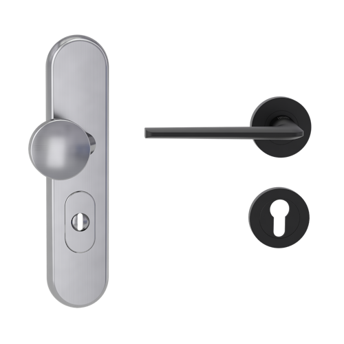 Griffwerk TITANO Kombi SB_882 ES1 (S2) -Edelstahl matt Kombi-Schutzbeschlag -Knopf/Drücker -mit Griff REMOTE -GSC -rund -L -ZA, 72mm -TS 38-50