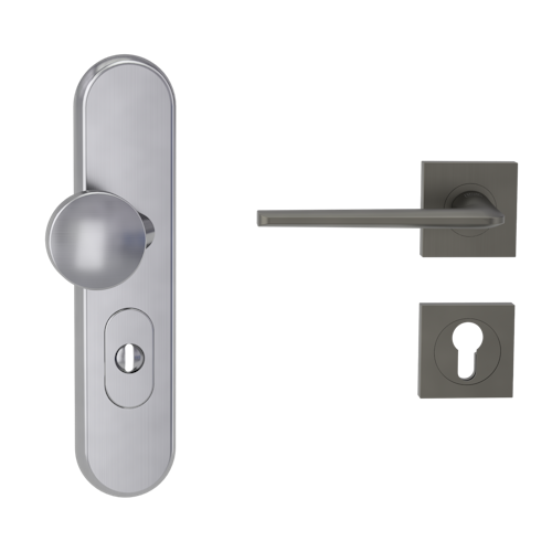 Griffwerk TITANO Kombi SB_882 ES1 (S2) -Edelstahl matt Kombi-Schutzbeschlag -Knopf/Drücker -mit Griff REMOTE -KGR -eckig -L -ZA, 72mm -TS 38-50