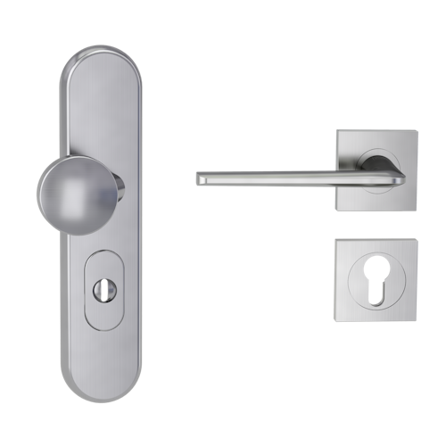 Griffwerk TITANO Kombi SB_882 ES1 (S2) -Edelstahl matt Kombi-Schutzbeschlag -Knopf/Drücker -mit Griff REMOTE -SG -eckig -L -ZA, 72mm -TS 38-50