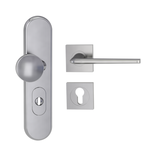 Griffwerk TITANO Kombi SB_882 ES1 (S2) -Edelstahl matt Kombi-Schutzbeschlag -Knopf/Drücker -mit Griff REMOTE -SG -eckig -R -ZA, 72mm -TS 38-50