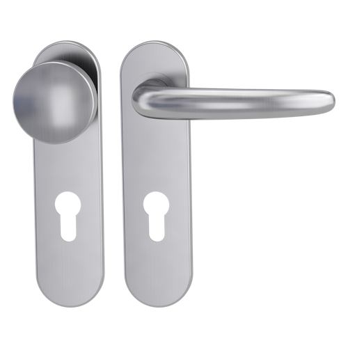 Wechselgarnituren bestehen aus zwei unterschiedlichen Türgriffen. Auf der Innenseite ist ein normaler Türgriff montiert, auf der Außenseite befindet sich ein unbeweglicher Knopf. Die Tür lässt sich dadurch von außen nur mit einem Schlüssel öffnen. Wechselgarnituren sind ideal für an Nebeneingangstüren, wie im Keller oder der Garage. Unsere hochwertig verarbeiteten Wechselgarnituren passen auf herkömmlich gebohrte Türen und sind sowohl in Wechsel-rechts als auch Wechsel-links erhältlich.