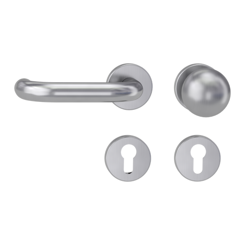 Sie suchen einen souveräner Klassiker? Bitte sehr, hier ist die Wechselgarnitur ALESSIA von GRIFFWERK. Ausschließlich hochwertiges, matt gebürstetes Edelstahl, ein durchgehend 19,5 mm starker Zylinder und zwei geschwungene Viertelkreise, auf der Außenseite der R4 Standardknopf.