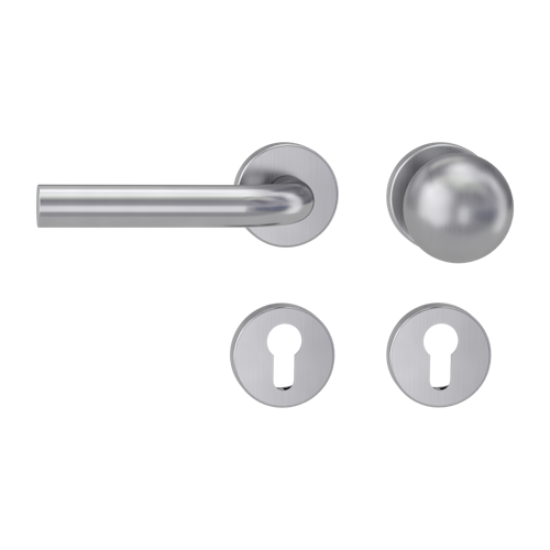 Das charakteristische Merkmal der Wechselgarnitur DANIELA aus der GRIFFWERK Ideenschmiede ist die einzigartige Reduktion auf das Wesentliche: hochwertiger, matt gebürsteter Edelstahl, komplett zylindrisch geformt, mit geradem Endstück, sehr geschmackvoll dazu der markant reduzierte Auftritt des R4 Knopfs in Kugelform.