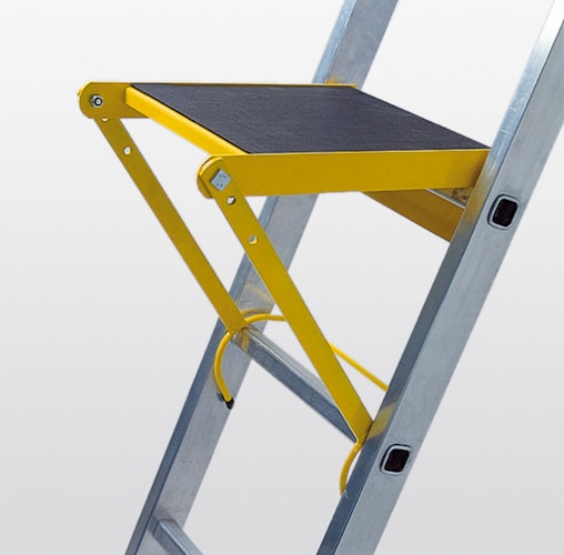 Das Einhängepodest ist für alle, die länger auf der Leiter stehen müssen.