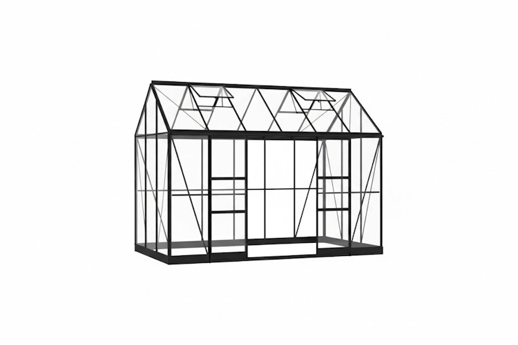 Das Halls Icon Pflanzenhaus bietet auf bis zu 9,7 m² eine großzügige Seitenhöhe von 1,9 Metern, ideal für Tomatenpflanzen, Klettergewächse und Pflanztische. Die doppelte Schiebetür an der Längsseite und die niedrige Türschwelle ermöglichen einen bequemen Zugang, auch mit Schubkarre. Erhältlich in Grün oder Schwarz, setzt das Gewächshaus neue Maßstäbe.