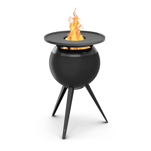 Und für den Fall, dass sich die Gartenparty zu späterer Stunde in einen Lounge-Abend verwandelt, lässt sich die schwarze Perle mühelos auf einen bodennahen Gussfuß absenken. In jeder Hinsicht eine Meisterstück in der Welt der Feuerstellen.