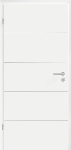 Hörmann BaseLine Holz-Wohnungseingangstürblatt in der Ausführung Duradecor-DesignLine- Stripe 15 mit 4 Linien , RAL 9016