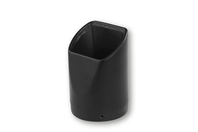 Die IRONHEAD Endkappe Square in schwarzer Lackierung bietet eine moderne Optik fuer alle runden IRONHEAD-Schalldaempfer mit 112 mm Durchmesser. Die hochwertige Verarbeitung und die abgeschraegte Form mit rechteckigem Auslauf machen diese Kappe zu einem echten Design-Element. Durch die Verstellbarkeit in vier verschiedenen Positionen koennen Fahrer das Erscheinungsbild ihres Auspuffs individuell anpassen und so ein einzigartiges Styling kreieren. Die seidenmatt schwarze Oberflaeche fuegt sich nahtlos in moderne Motorrad-Designs ein. Dieses Zubehoerteil ist fuer den kompromisslosen Genuss auf dem Bike entwickelt worden und laesst sich einfach am Endtopf montieren.