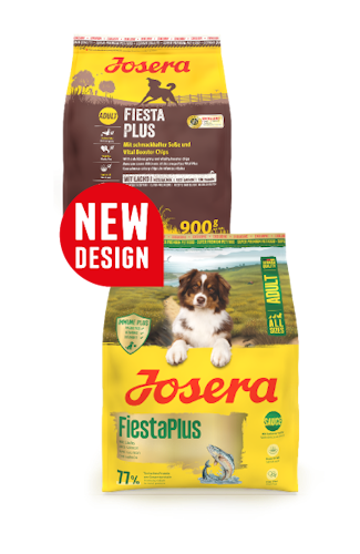 Josera Adult FiestaPlus ist glutenfreies Trockenfutter mit Geflügel, Lachs und Vital Boostern für gesunde Haut, Herz und mehr Vitalität bei ausgewachsenen Hunden.