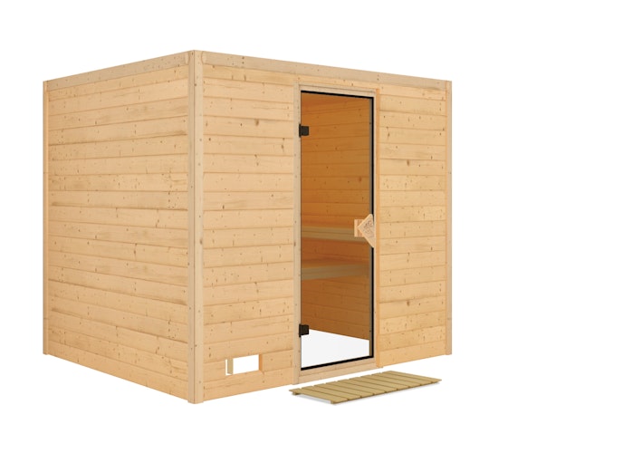 Karibu Sauna Sonara - Massivholzsauna mit Fronteinstieg 38 mm