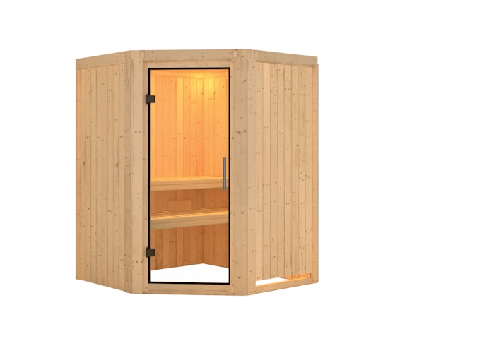 Karibu Sauna Larin mit Eckeinstieg 68 mm