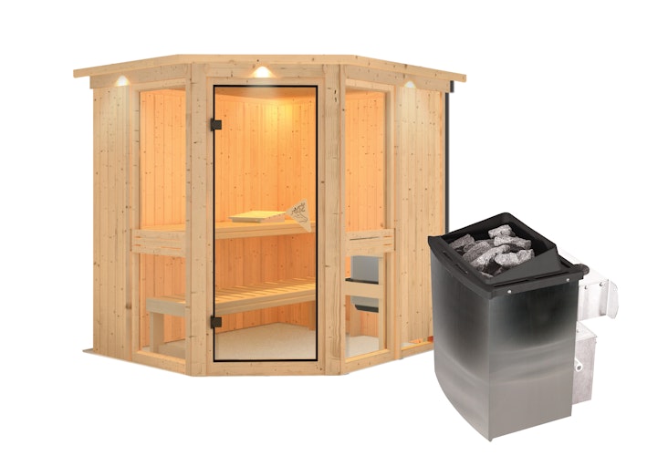 Karibu Amelia 1 - Sauna mit Eckeinstieg 68 mm