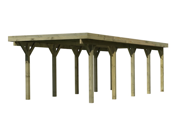 Die 11,5 x 11,5 cm starken Pfosten dieser Carports sind aus chromfreiem, kesseldruckimprägniertem Massivholz und bilden so in Verbindung mit geraden Kopfbändern die stabile Grundkonstruktion.