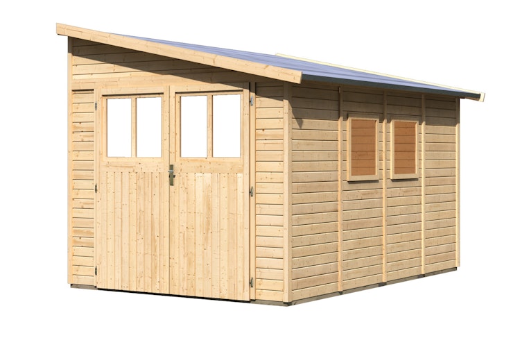 238 cm x 355 cm (Bomlitz 4) - Pultdach aus Massivholzbrettern