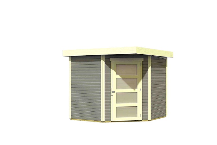 Das Karibu/Woodfeeling Gartenhaus Schwandorf eignet sich perfekt für die Platzierung in einer Grundstücksecke. Erhältlich in zwei Größen und auf Wunsch mit farblicher Vorbehandlung.