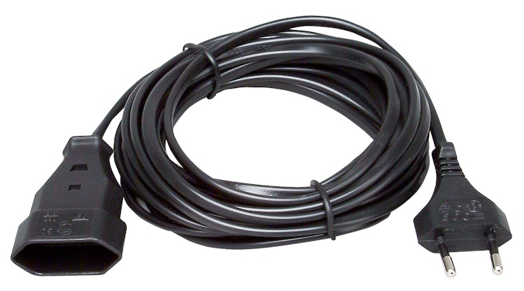 Euro-Verlängerung, Euro-Stecker und Euro-Kupplung mit Leitung H 03VVH2-F 2x0,75mm², 2polig, 2,5A, 250 V~