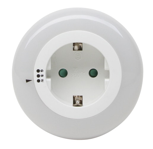 weiß/blau/grün-leuchtend (einstellbar), 16A/250V~, Steckdose max. 3.680Watt, mit Dämmerungssensor