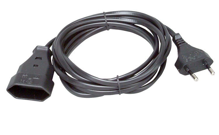 Europa-Verlängerung, Europa-Stecker und Europa-Kupplung mit Leitung H 03VVH2-F 2x0,75mm², 2polig, 2,5A, 250 V~, 3 m, schwarz