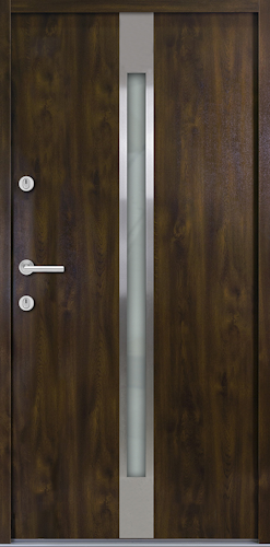 Bei unserem Modell Hannover sticht der schmale Glasausschnitt sofort ins Auge. Durch das gewählte Glas im Ornament Satinato besticht diese Tür gleichzeitig mit einfallendem Sonnenlicht und einem hohen Maß an Privatsphäre. Passen Sie das Design Ihrer Nebeneingangstür durch die Wahl einer unserer vier Farben anthrazit, weiß, Golden Oak oder Nussbaum bestens an Ihre Fassade an.