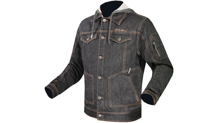 LS2 Oaky urbane Jeansjacke für Herren in Schwarz (Gr. 5XL): Premium-Denim mit abnehmbarem Windkragen & Kapuze. Doppelverschluss (Reißverschluss + Knöpfe), 2 Außentaschen mit Reißverschluss, 2 Brusttaschen, 1 Innentasche. CE-Protektoren an Schultern & Ellbogen, verstellbare Ärmelbündchen & Taillenweite.