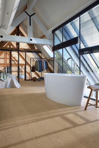 Das ultramattlackierte Finish benetzt jede Pore, wodurch die Dielen eine besonders edle und natürliche Optik erhalten und gleichzeitig pflegeleicht, fleckenunempfindlich und widerstandsfähig gegen Mikrokratzer sind.